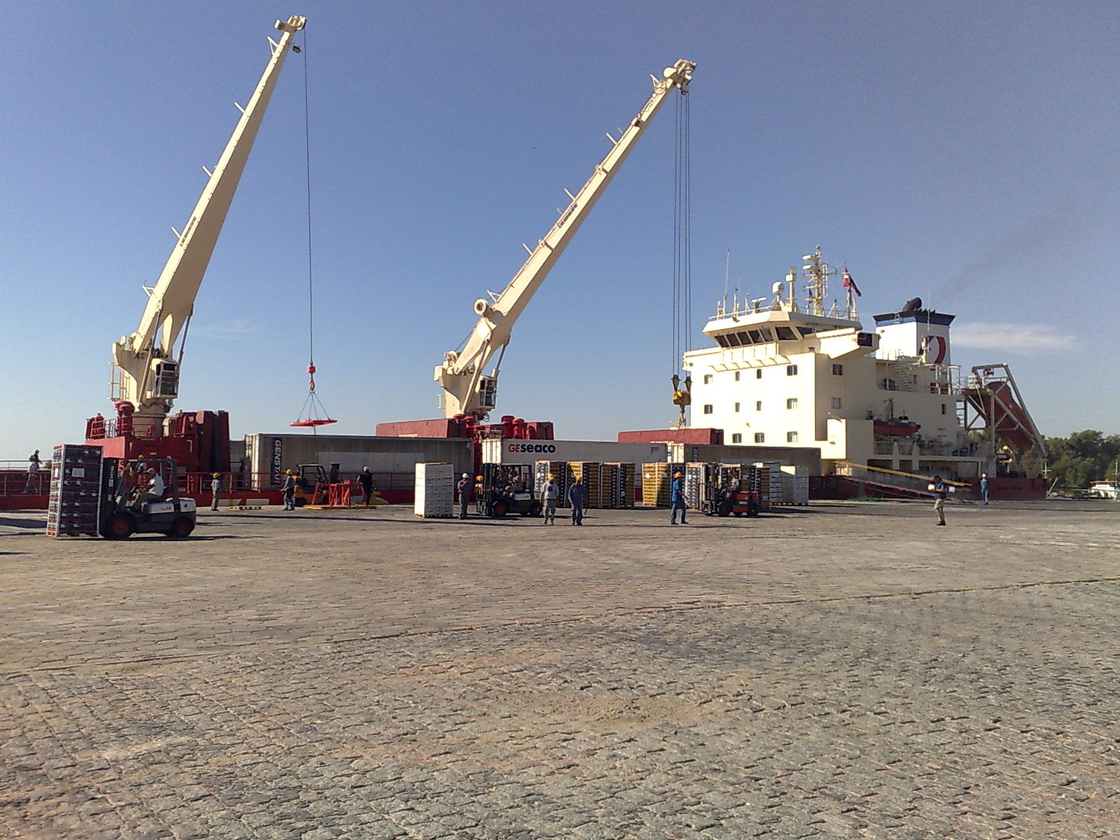 El Buque Scandinavian Reefer, que cargó 3600 pallets de cítricos con destino a Rusia, operó con una novedad para nuestro puerto.Además de los pallets que se cargaron en la forma convencional, se cargaron también varios contenedores vacios, los cuales fueron consolidados luego a bordo del Buque.La operación resultó muy exitosa, aunque lógicamente, se demoró un poco más en finalizar la tarea.Esto pone en evidencia la necesidad de convertir al Puerto San pedro en un Puerto Multimodal y también reafirma la confianza depositada por los usuarios que a pesar de no encontrar aquí toda la infraestructura necesaria, decidieron efectuar aquí esta carga alternativa. La capacidad e idoneidad de los trabajadores es un factor de peso en esta cuestión, y una vez más demostraron su predisposición y conocimiento en el manejo de cargas.
